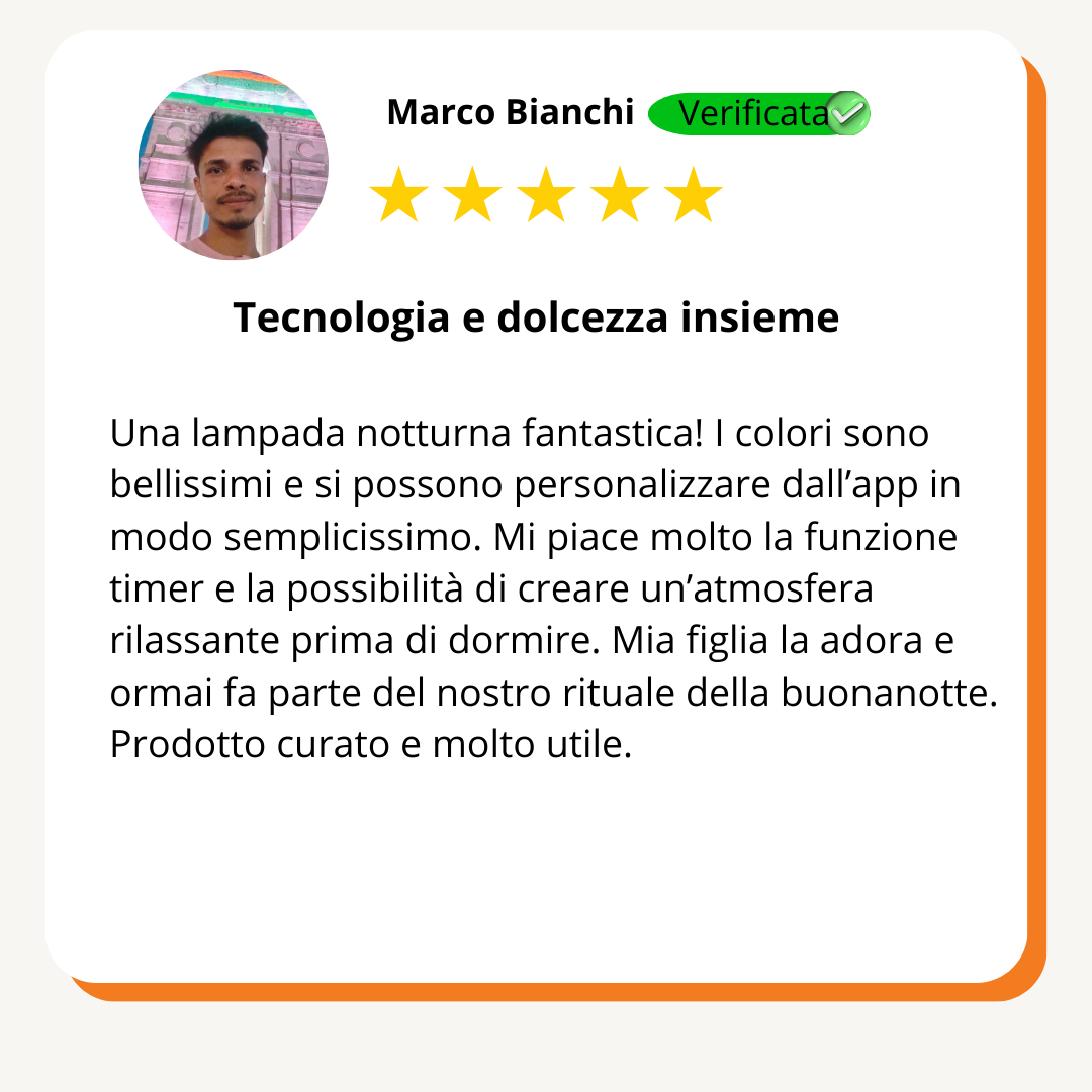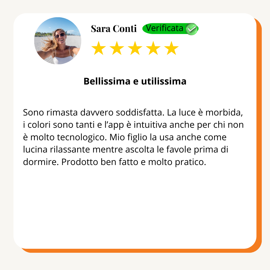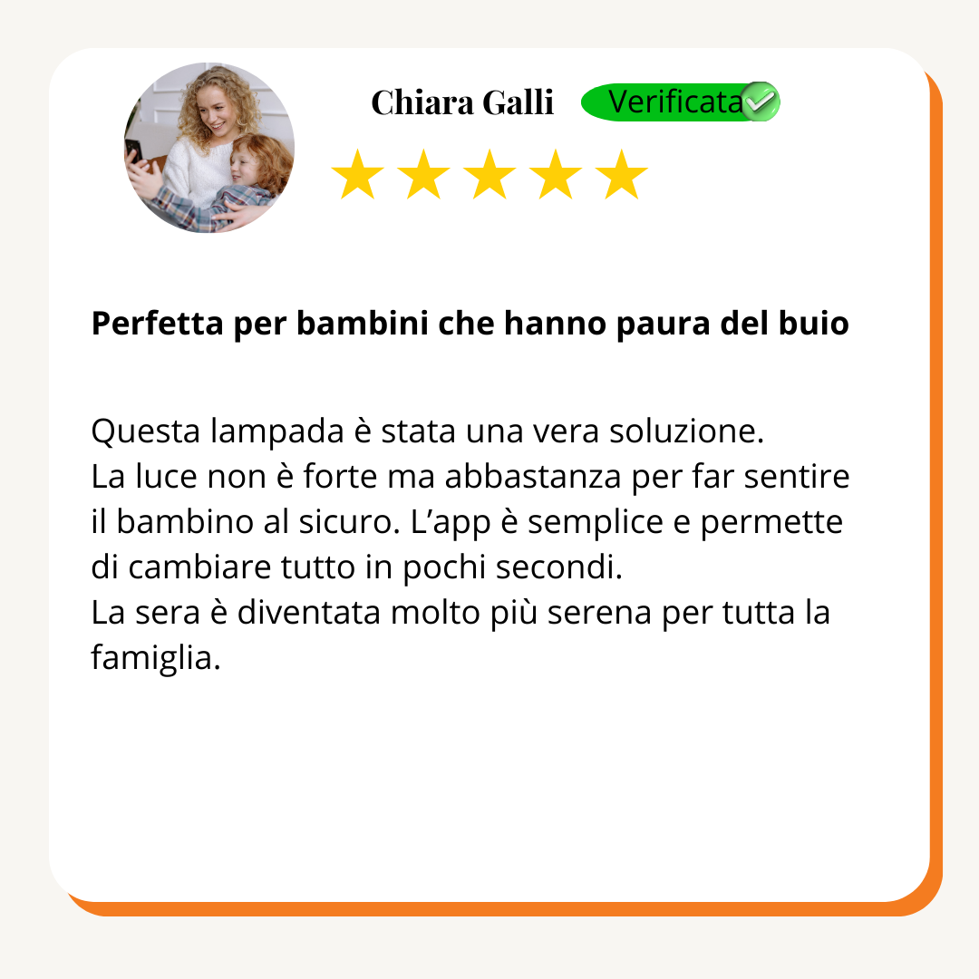 "Con la luce giusta che si diffonde delicata, il sonno arriva più in fretta, e l’intera stanza respira calma. Guardi chi ami addormentarsi sereno e scopri che la notte può davvero diventare un abbraccio condiviso"